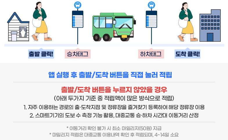 대중교통 이용시 이동거리(보행,자전거 등)만큼 마일리지를 지급해주는 사업입니다.