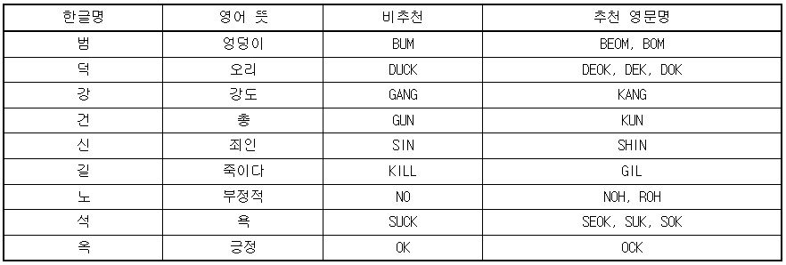 하지만 영어를 많이 쓰지 않는 분들에게는 영문 이름 변환이 조금 어려우실 수 있습니다.