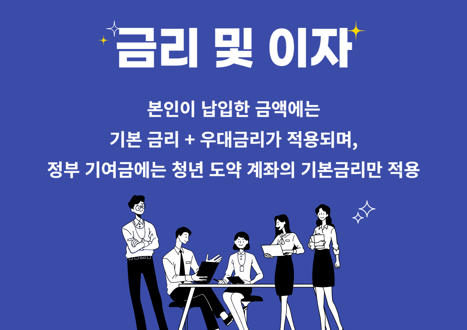 가입자 본인이 납입한 금액에는 청년도약계좌의 기본 금리 + 우대금리가 적용되며,