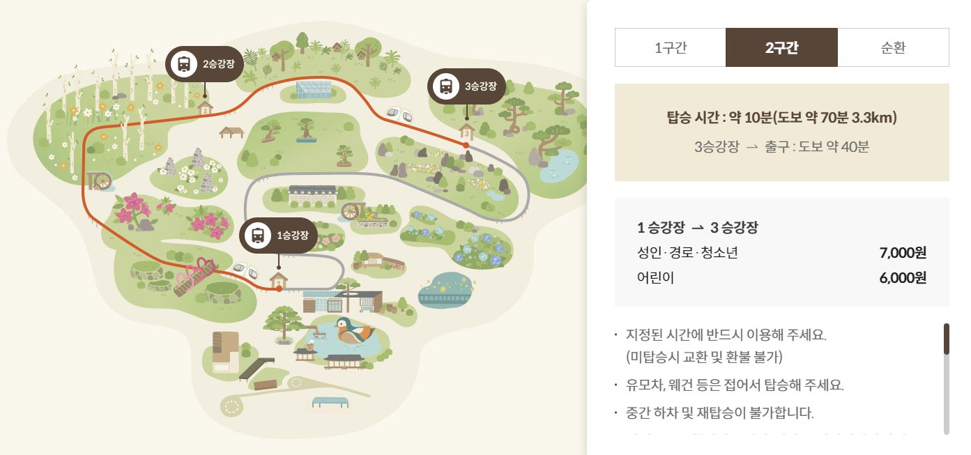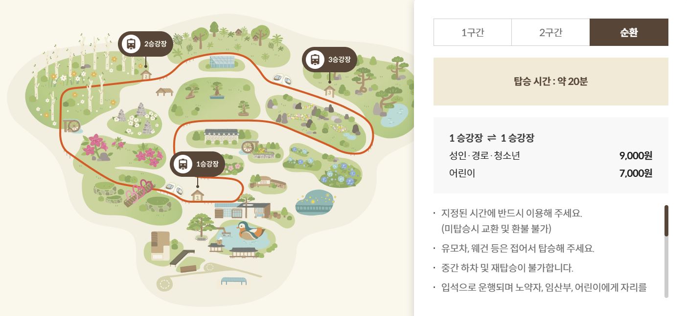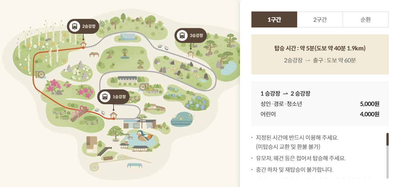 - 화담숲 입장시간을 모노레일 탑승시간보다 1~2시간 일찍 잡아주세요. (리프트 대기 시간 고려)