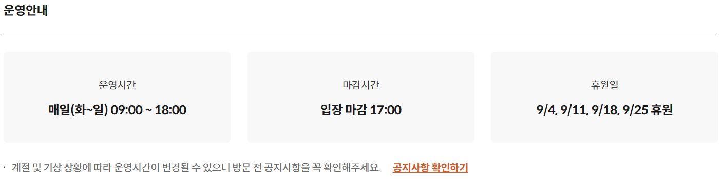 관광 일정을 계획하실 때, 꼭 화담숲 운영시간과 휴원일을 확인하시기 바랍니다.