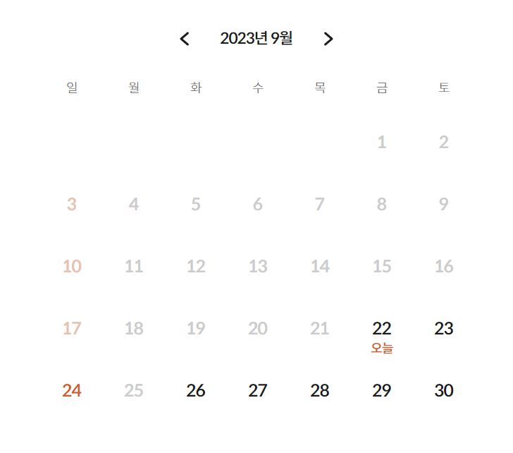 색이 진한 날짜들만 선택 가능한 상태입니다!