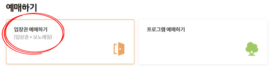 화담숲 입장권은 필수예매, 모노레일은 선택예매입니다.